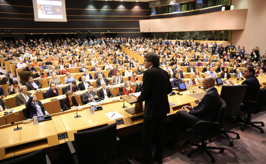 El día 24 de enero Carles Puigdemont, el vicepresidente Oriol Junqueras y Raül Romeva, el consejero de Asuntos Exteriores, realizaron una conferencia en el Parlamento Europeo exponiendo la situación actual y explicando que Cataluña lo único que busca es votar, sinónimo de democracia; uno de los valores fundamentales en que se rige la Unión Europea. Actos como estos hacen que el último informe emitido por el Centro Nacional de Inteligencia (español) destacara la brecha que se está abriendo en la solidaridad con España por parte de Europa.